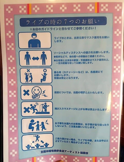 消毒検温はもちろんの事、飲食してない時はマスク着用してのライブ観戦、指笛禁止、カチャーシーはその場で、歌を歌うときもマスク着用、乾杯のグラスは重ねない、などなどいろいろ制約は多々ありましたが、皆様のご協力のもと安心して久しぶりに思いっきり楽しめました。